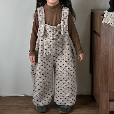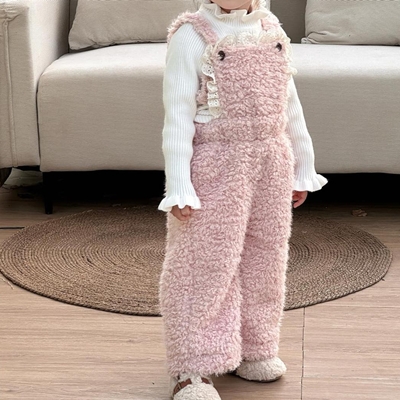 - 비다이어리.핑크양털뽀글이멜빵바지