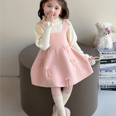 - [빠른수입] 핑크리본 니트+원피스 셋
