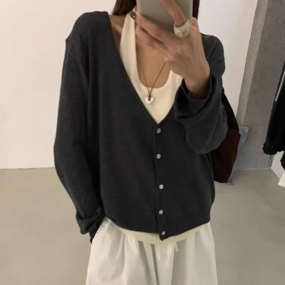 on.[CD571]홀터넥나시레이어드루즈핏가디건
